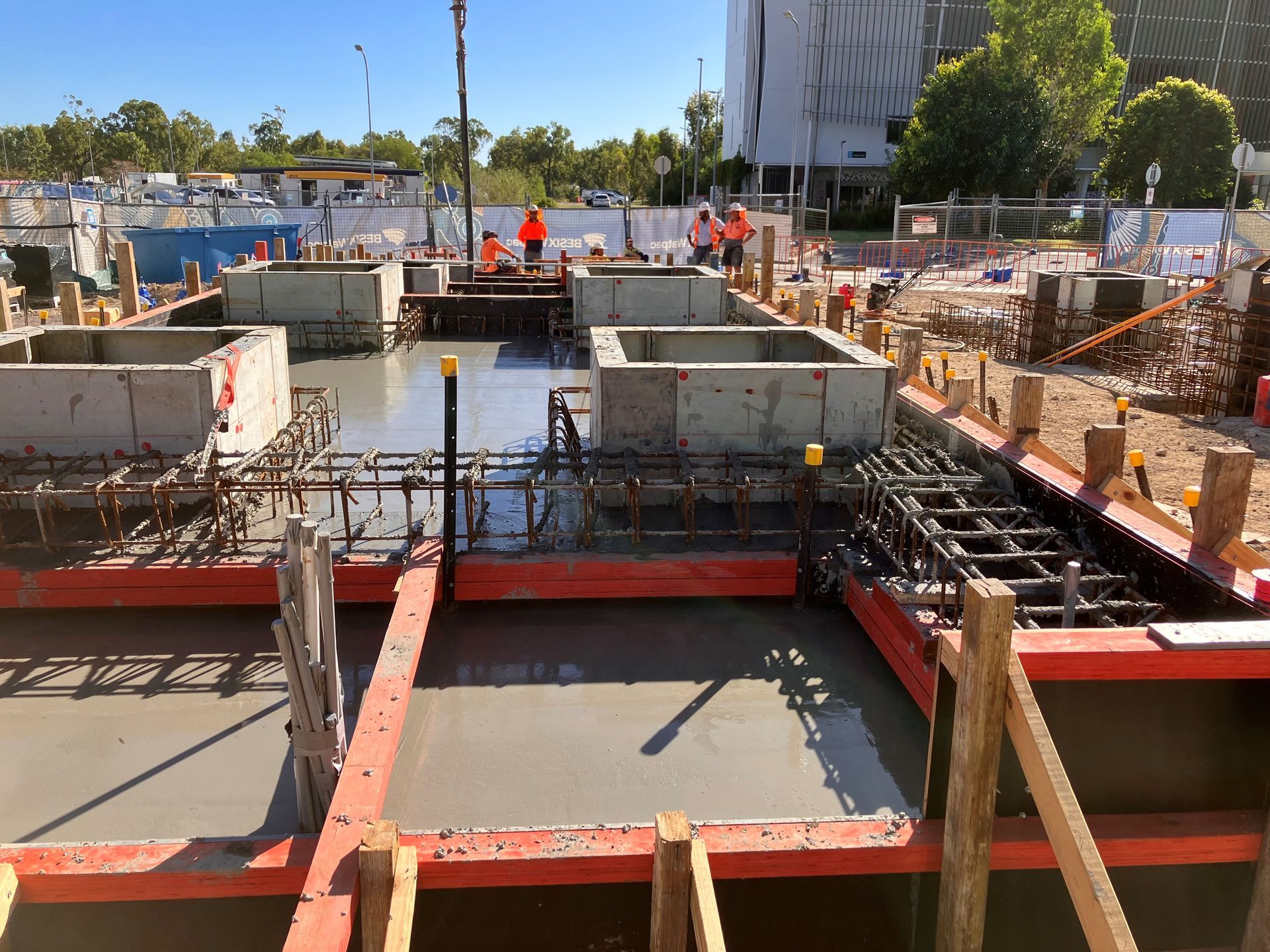 Scope/Details: A new multi storey medical centre development is underway on Bundock Street. PJ Walsh are engaged to excavate the pad, form the reo, pour footing for 5 storey structure, form columns and walls, and form 100m2 deck.