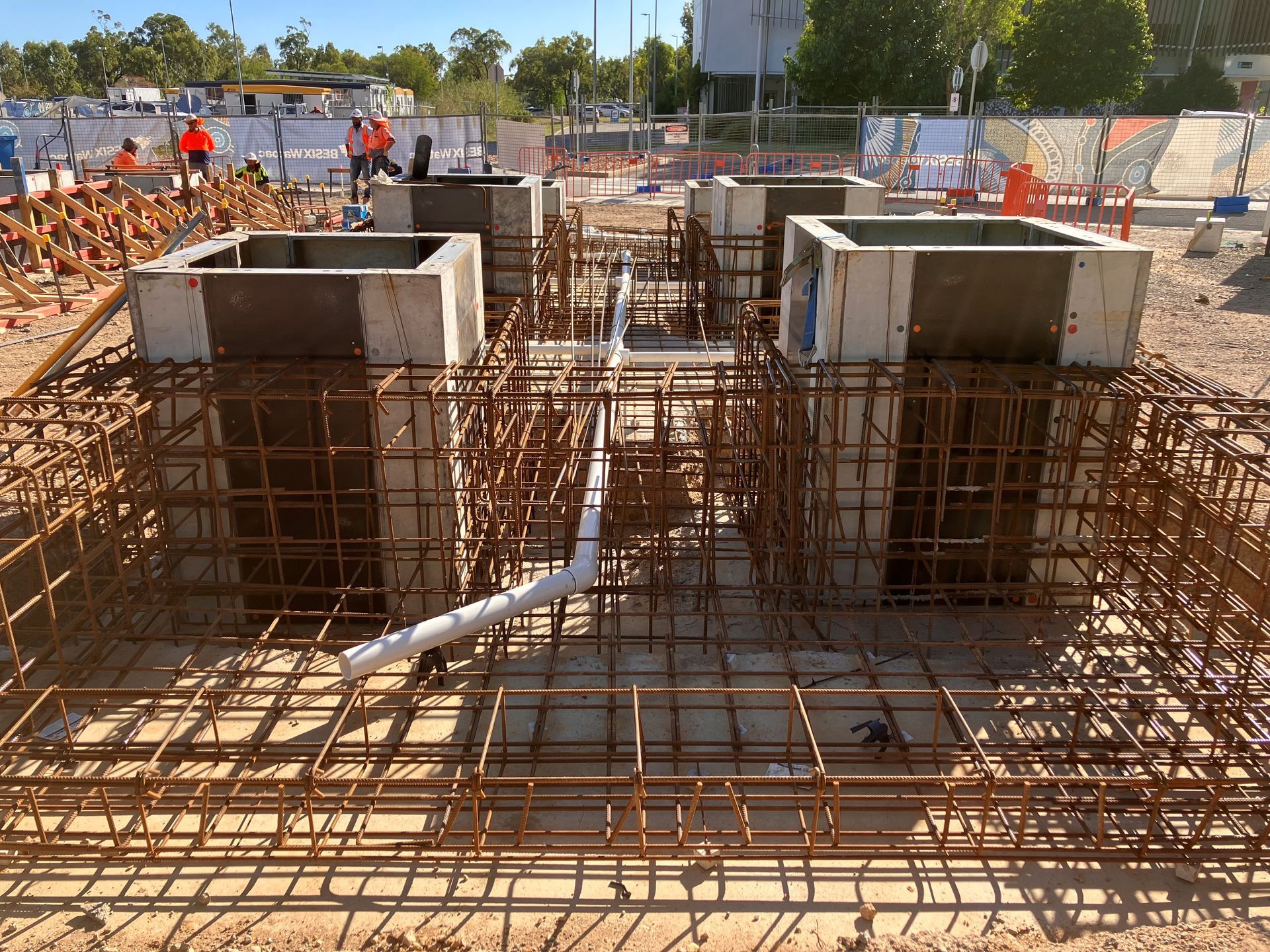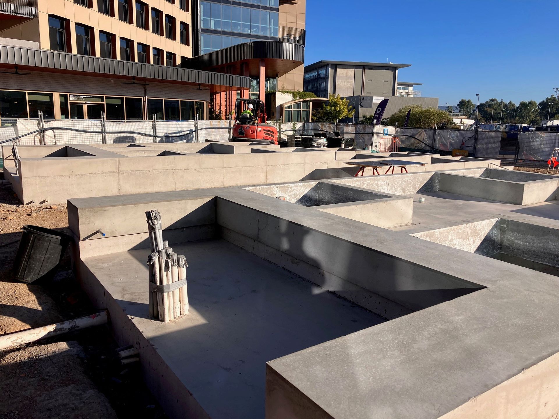 Scope/Details: PJ Walsh are engaged for the hard landscaping of the new TIC Project underway at JCU which involves the structural concrete for the water feature, as well as cross overs, footpaths and 3-4 tread stairs. This is part of the new Technology Innovation Complex (TIC) under construction by BESIX Watpac. The four-storey, 9,400m2 TIC Complex will be the centrepiece of an innovation hub in which undergraduate and postgraduate engineering and IT students, industry partners and researchers will converge and collaborate.